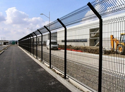 3D-панели: Сетчатая структура и V-образные ребра жесткости хорошо пропускают ветер, создавая минимальную нагрузку на столбы и фундамент.